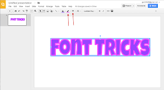 A cool trick I use often is the Word Art feature in Google Slides. Go to Insert>Word Art and type in your title, word or words then press enter. Change your font style. Change the font color by clicking on the paint can: